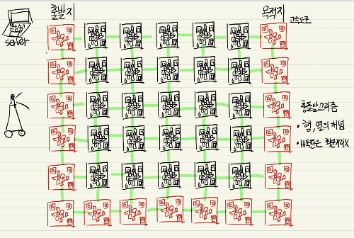 이런 바둑판모양에서의 자동차는 최단거리를 고려할 필요가 없다.