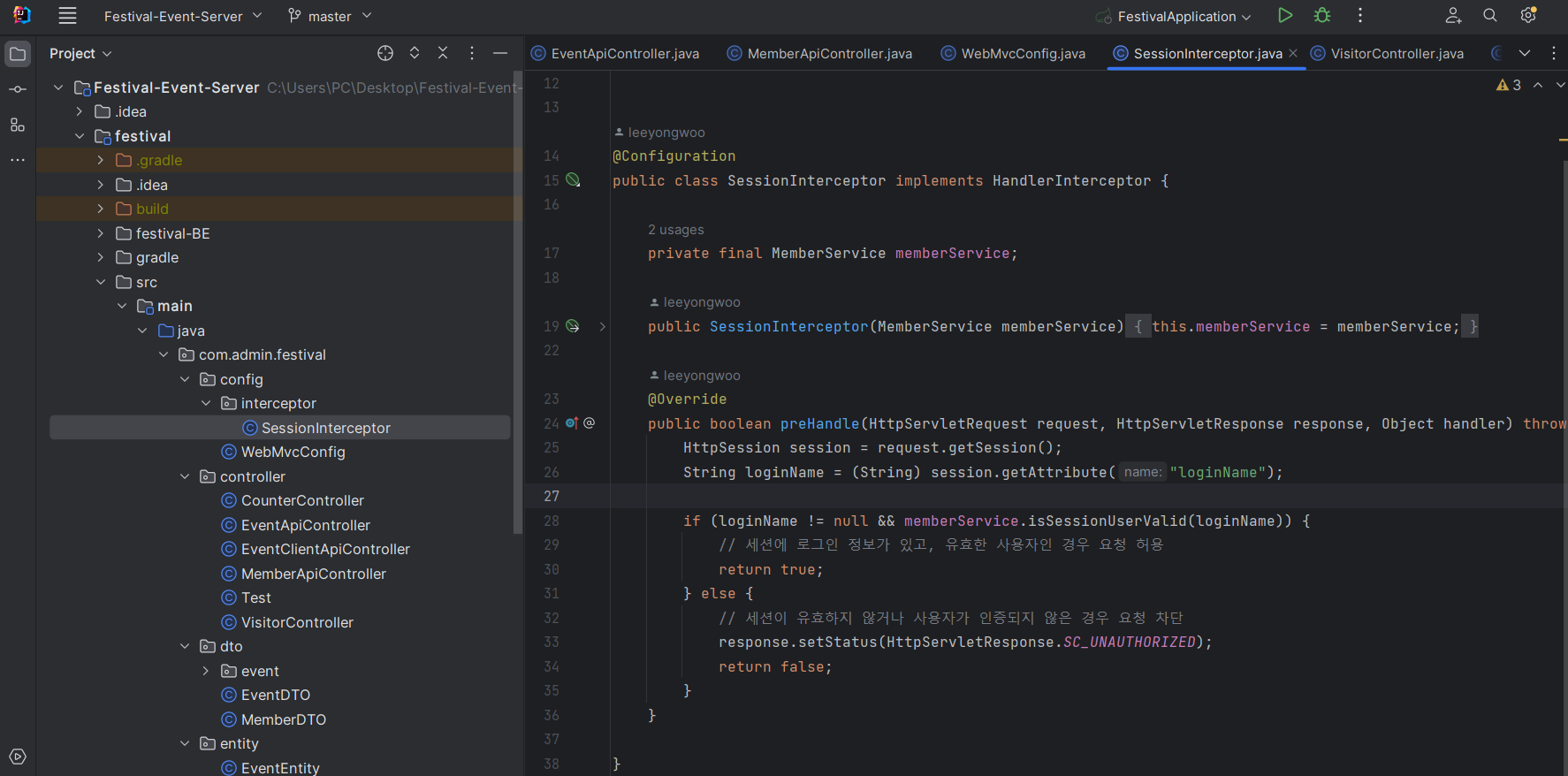 registry.addInterceptor(new SessionInterceptor(memberService))