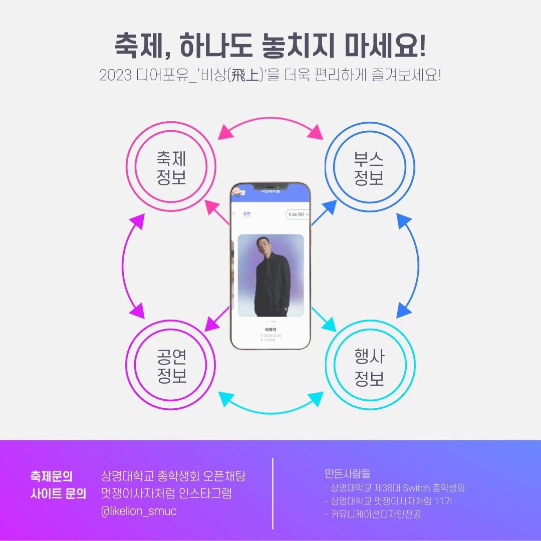 "비상(飛上)"이라는 축제답게 메인디자인로고를 보면 비행기처럼 날아오르라는 감정을 가지게 만든다.