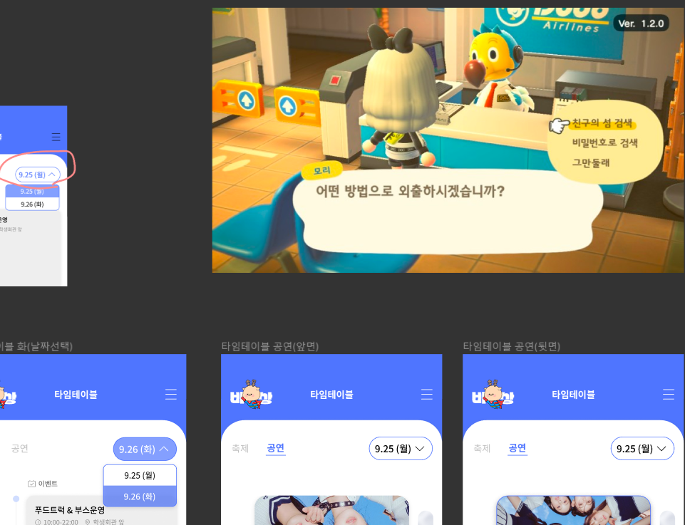 그래서 기획과 초안을 총학생회로부터 파일도 받고 회의도 진행이 되었다. 개발적인 이야기로 디자인팀과도 아이템이 어느 정도 정해져서 디자인팀이 먼저 디자인개발에 들어갔다.