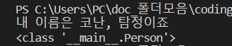 p = Person("코난", "탐정")