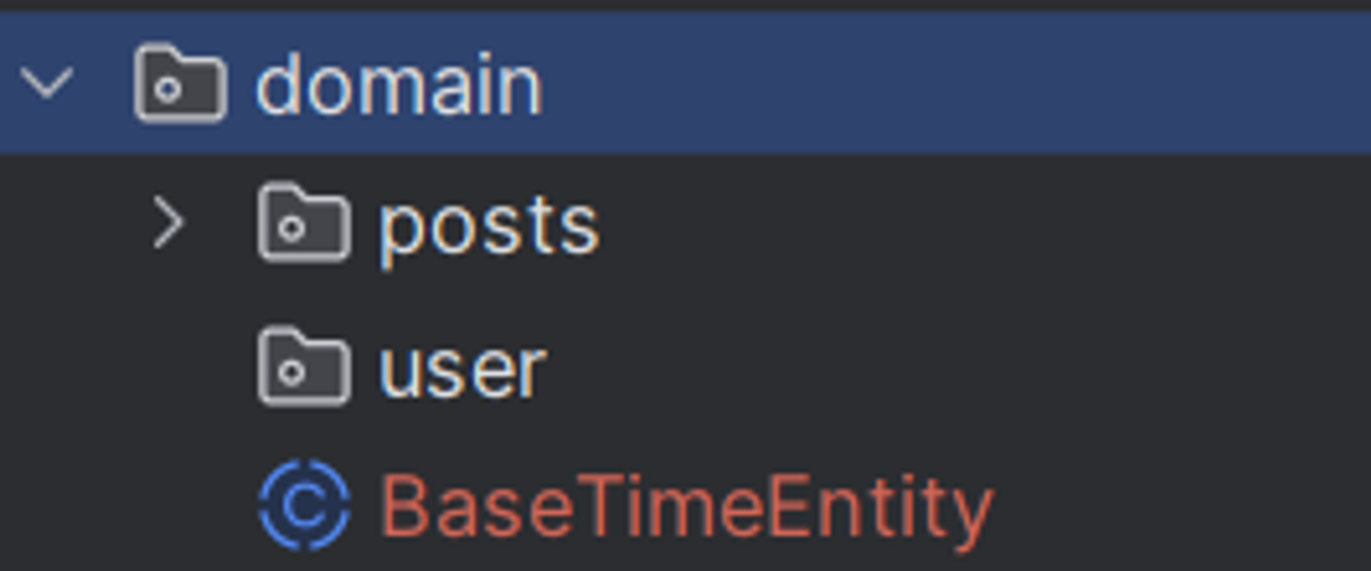 [ JPA Entity가 BaseTimeEntity를 상속하는 모습 ]