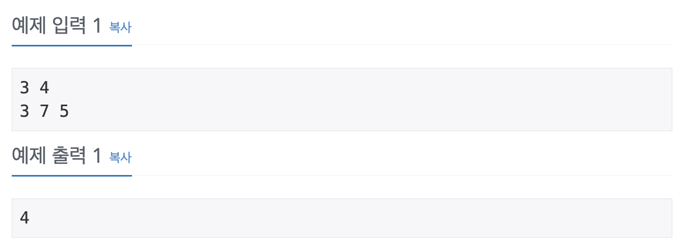 첫째 줄에 자연수 N과 K가 공백을 기준으로 구분되어 주어진다. (1 ≤ N ≤ 8, 1 ≤ K ≤ 50) 둘째 줄에 각 운동 키트의 중량 증가량 A가 공백을 기준으로 구분되어 주어진다. (1 ≤ A ≤ 50)