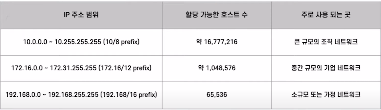 사설망의 내부 IP 대역을 할당할 때, 특정 대역 IP를 미리 사용하기로 약속한다.