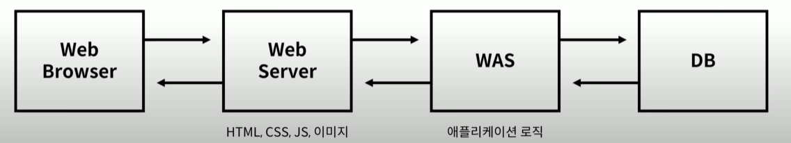 웹 서버는 모든 콘텐츠를 응답하진 않고, 정적 콘텐츠(HTML, JS, CSS)만 응답함.