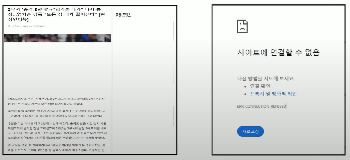 2) 서버 장애 시, 오류페이지도 누출 못하여 화면 노출 불가