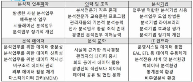 조직, 프로세스, 시스템, 데이터, 분석 관련 교육 및 마인드 육성체계