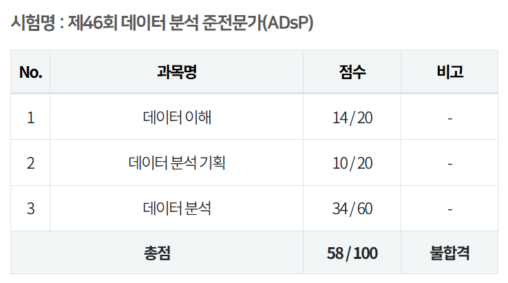 *과락 있어서 과목당 40% 이상 맞아야 함.