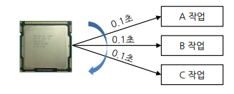 cpu 사용 시간을 잘게 쪼개서 task(작업)들에게 나누어 줌.