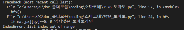 # if mat[px][py]==0: # 익지않은 토마토라면