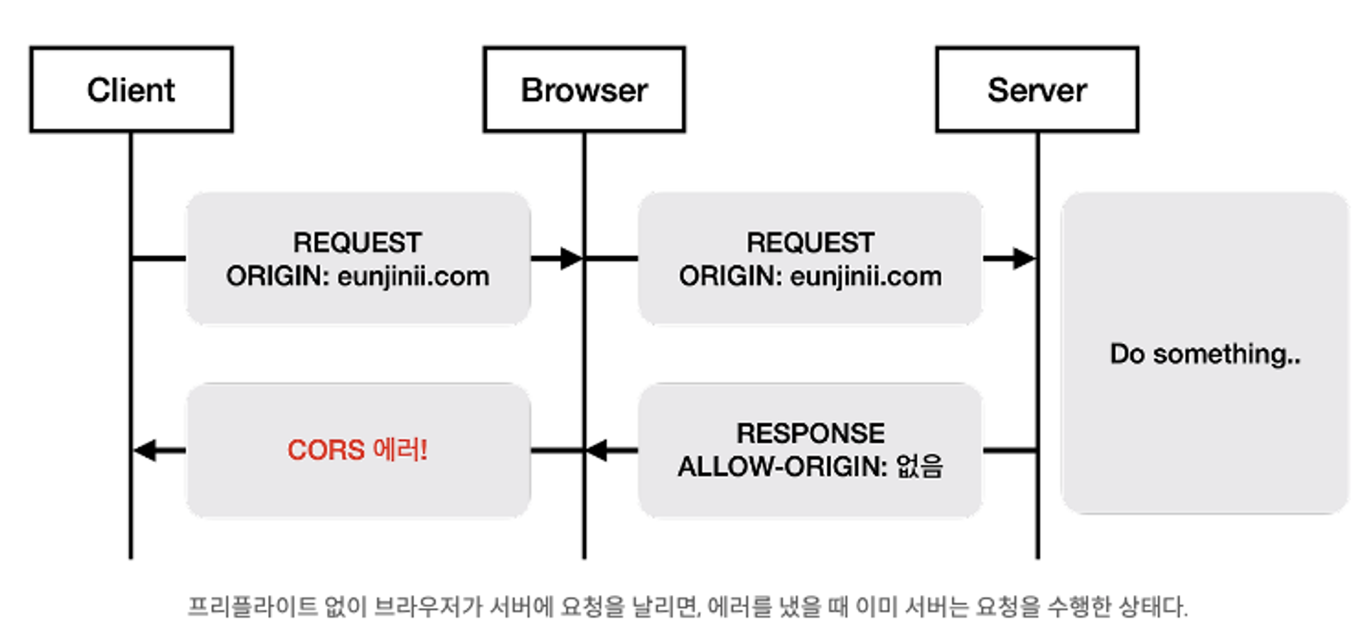 서버는 클라이언트와 만나기 전에 CORS에러가 있는지 모르기 때문이다.