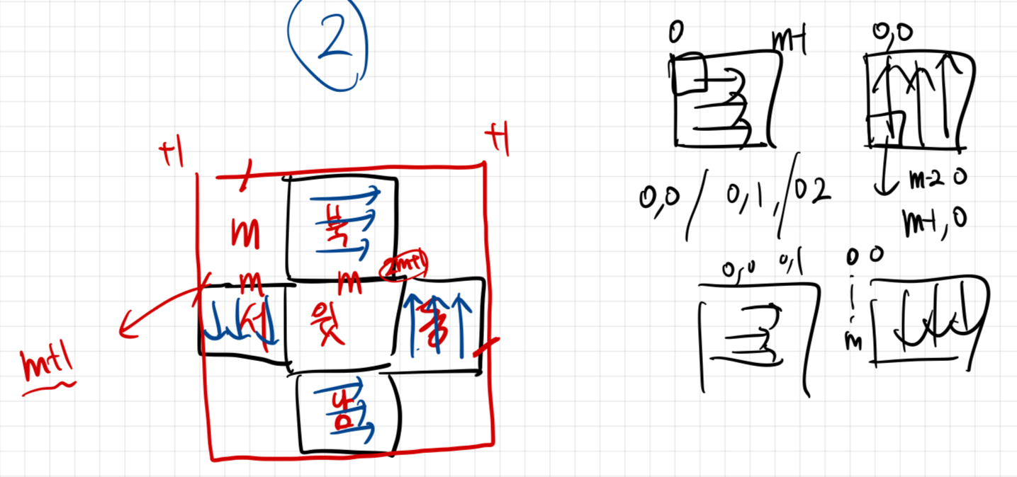 - 2차원 돌리기는 그림그려서 직접 숫자 매칭해보는게 가장 빠름