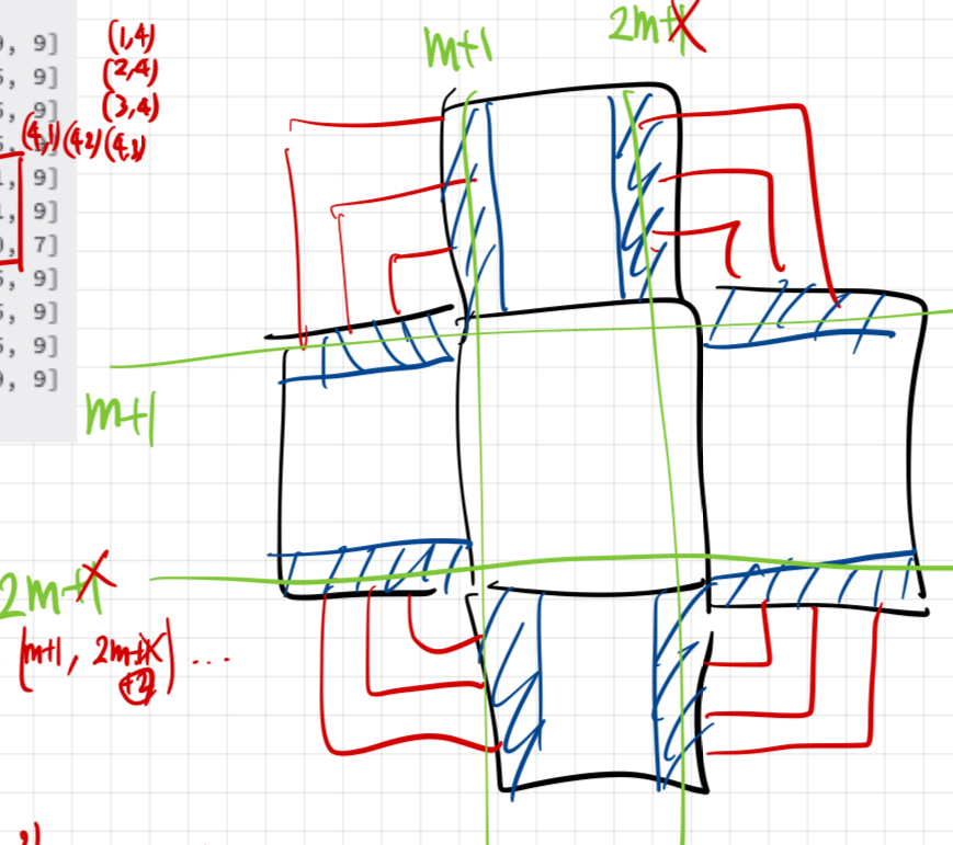- (3*m+2)*(3*m+2) 배열, n*n 배열 => 2개가 있었는데 BFS돌릴 때 복붙하다가 0<= px < n조건도 복붙같이 돼서 틀렸음.