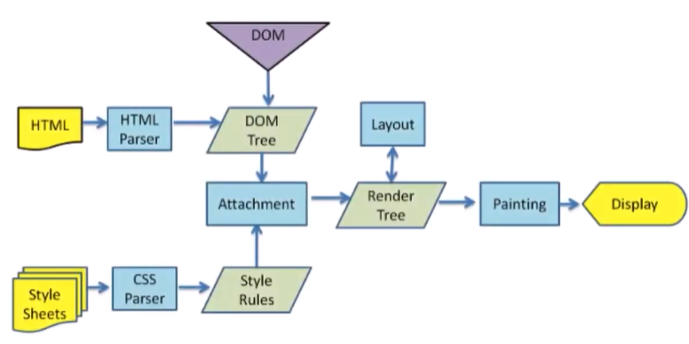 DOM tree 생성 -> Render tree 생성 -> Layout -> Paintin